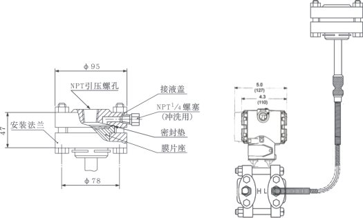 ⑤ GP型遠傳壓力變送器一側毛細管長度一般為1.5米,最長不宜超過3米(特殊情況協議商定)。