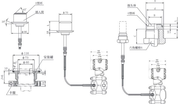 為了適應不同的安裝需求,本系列變送器具有多種形式的遠傳裝置供用戶選擇,變送器的主體結構與壓力變送器相同。